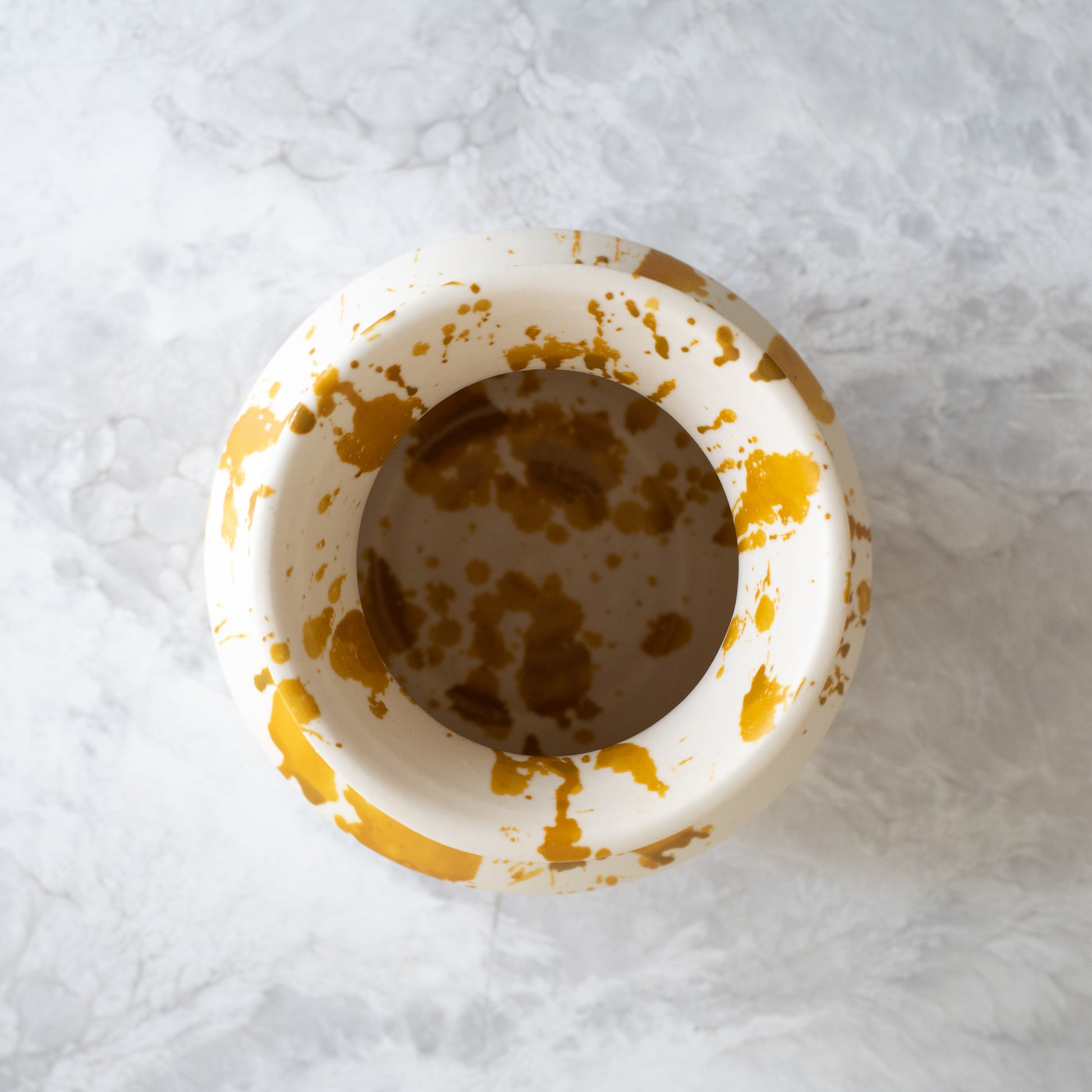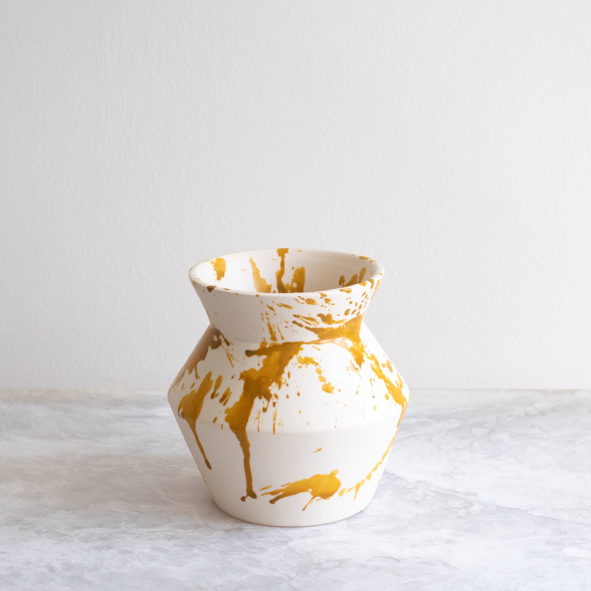 Glazed by hand in a matte glaze, each splatter and brushstroke is hand painted so that no two pieces are alike. A sculpture in itself, this vase makes a great gift for any art lover.