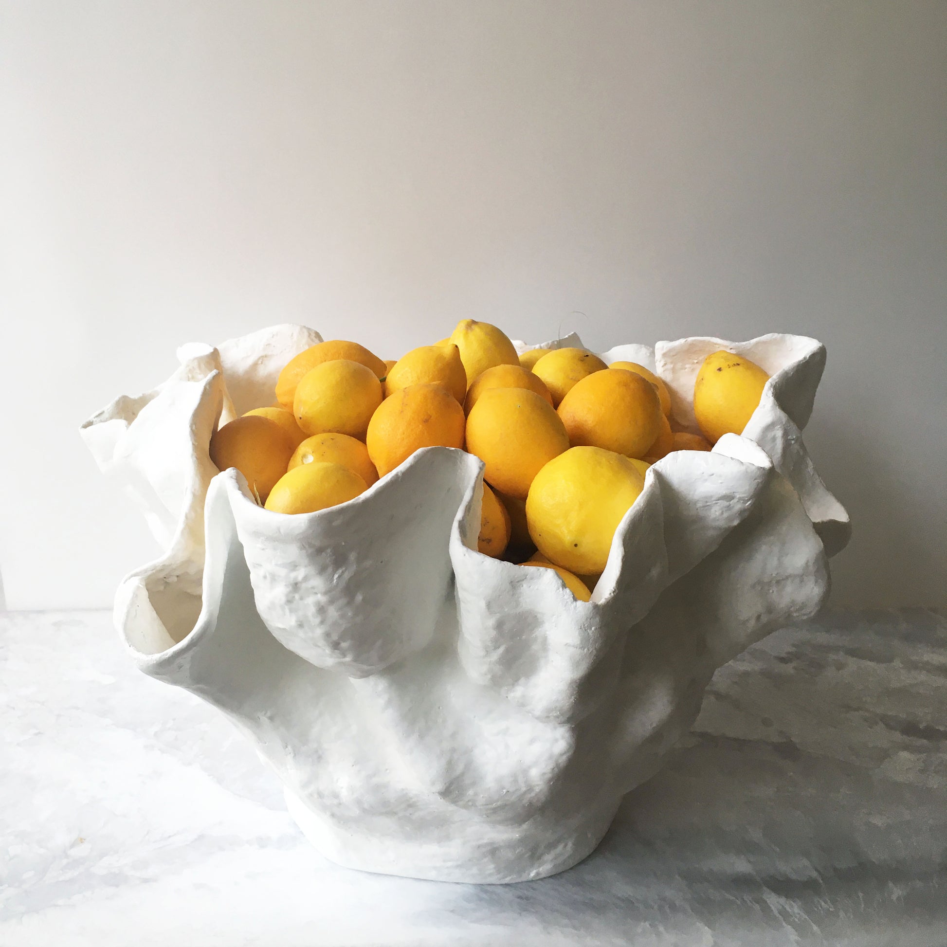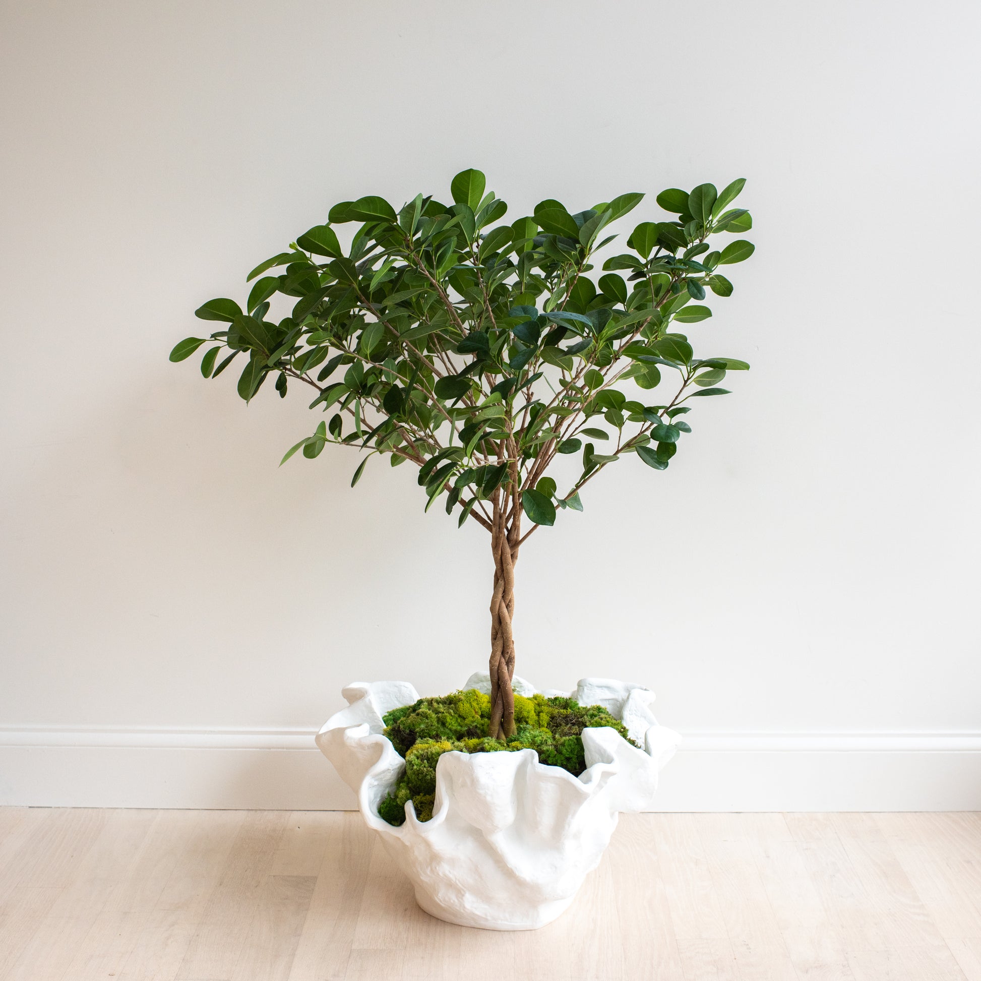 This free-form bowl has a lot of movement; it is waterproof for holding flowers and perfect for adding drama to outdoor settings (not made to withstand freezing temperatures).