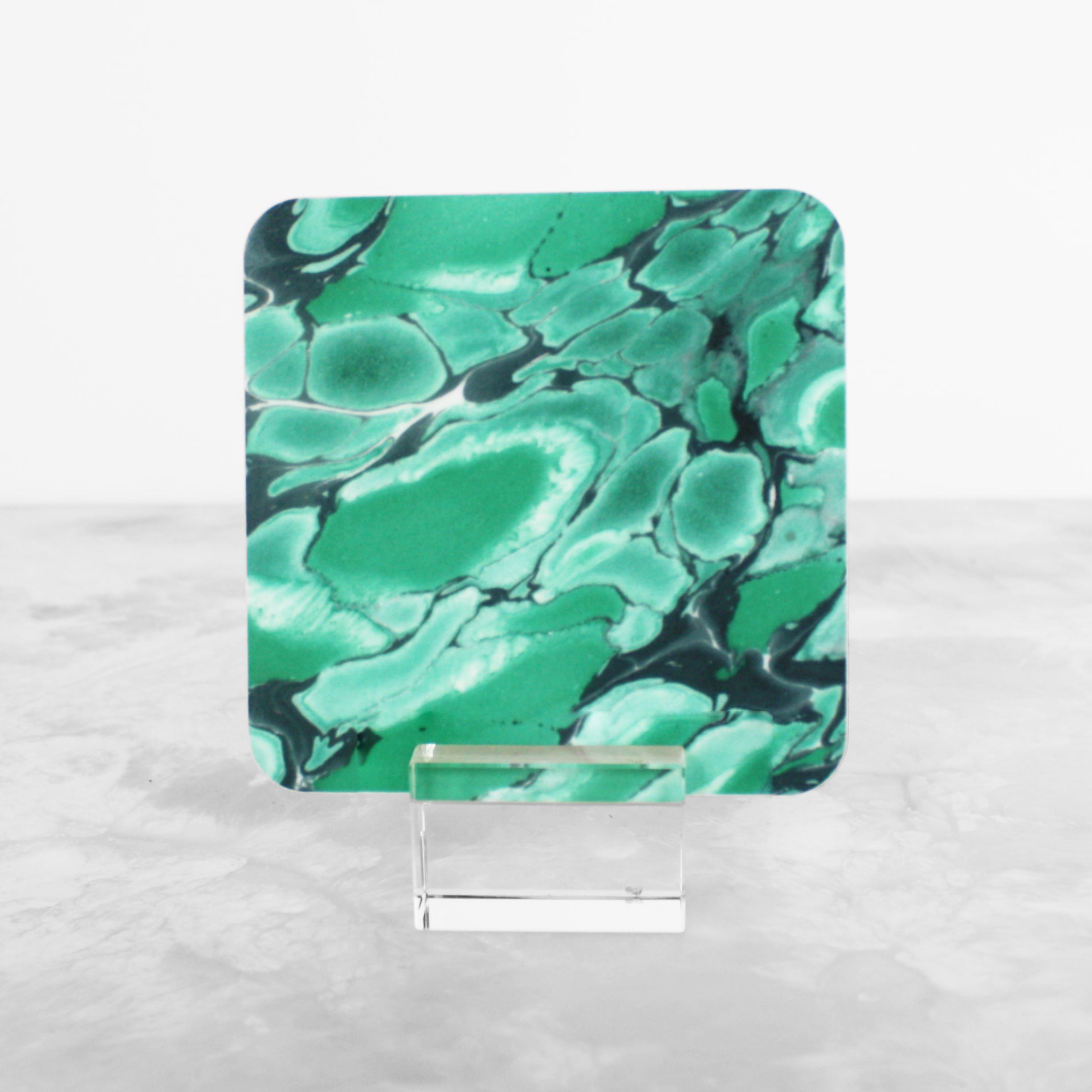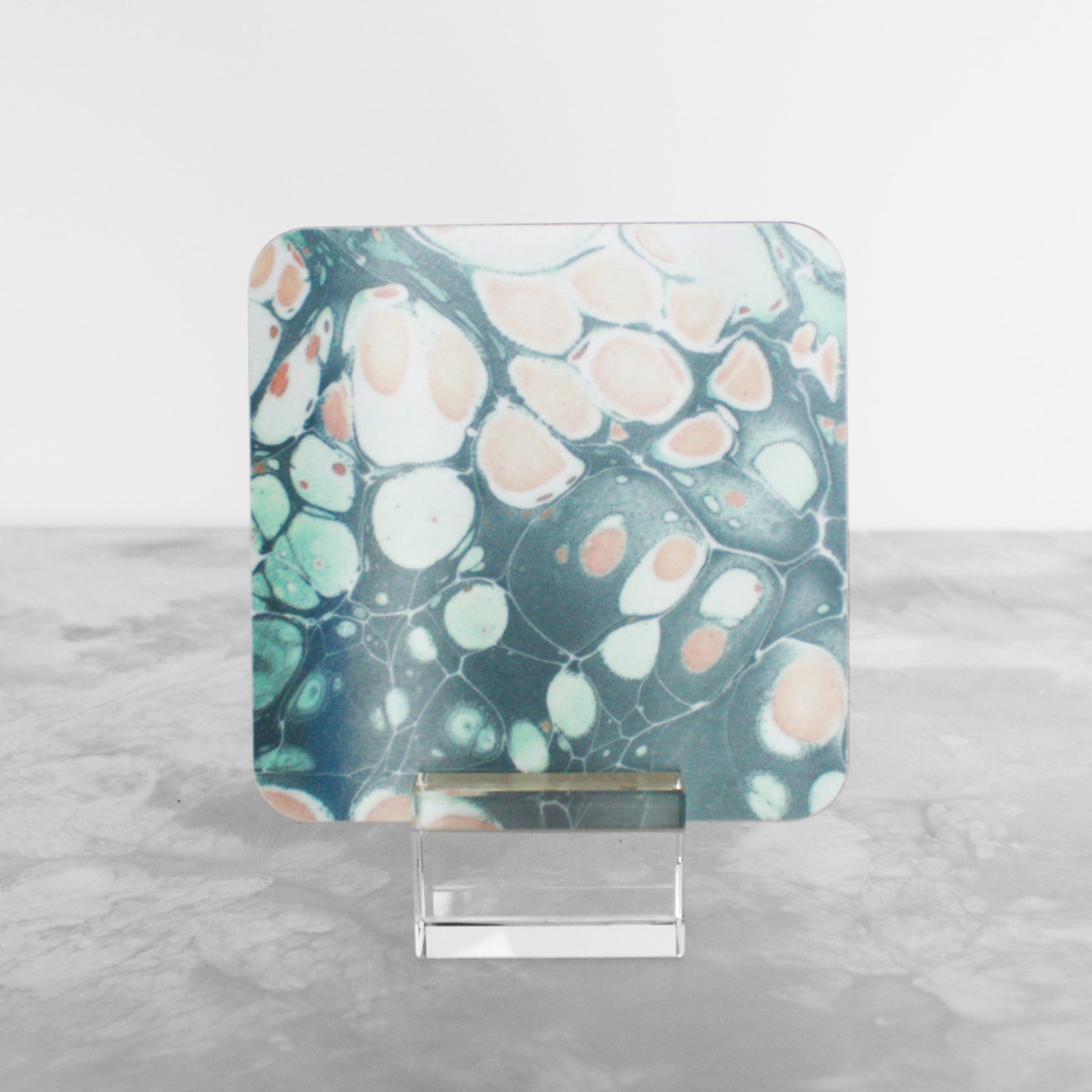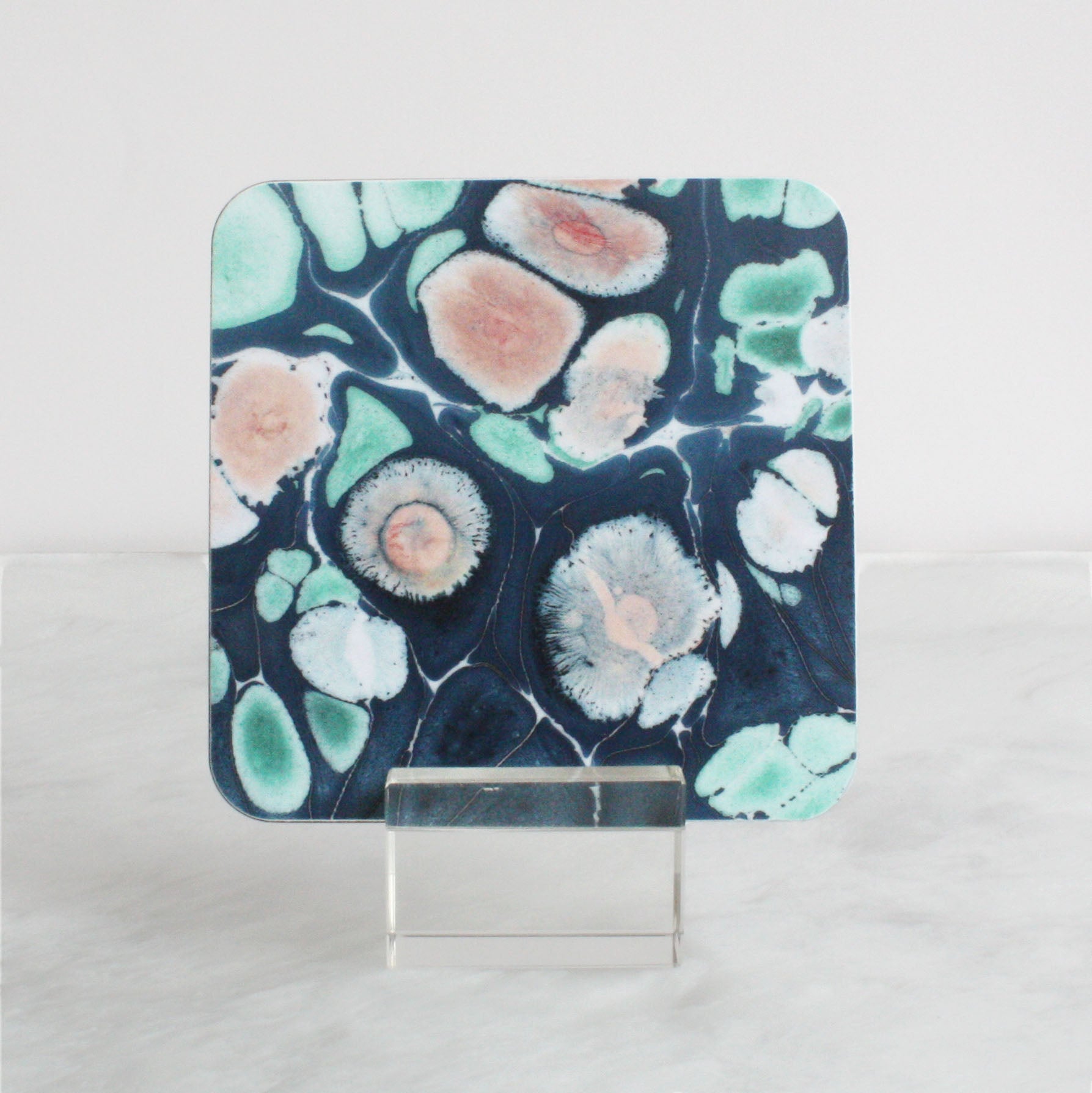 Heat resistant to 392 degrees. Wipe the coaster with a slightly damp cloth to clean it.