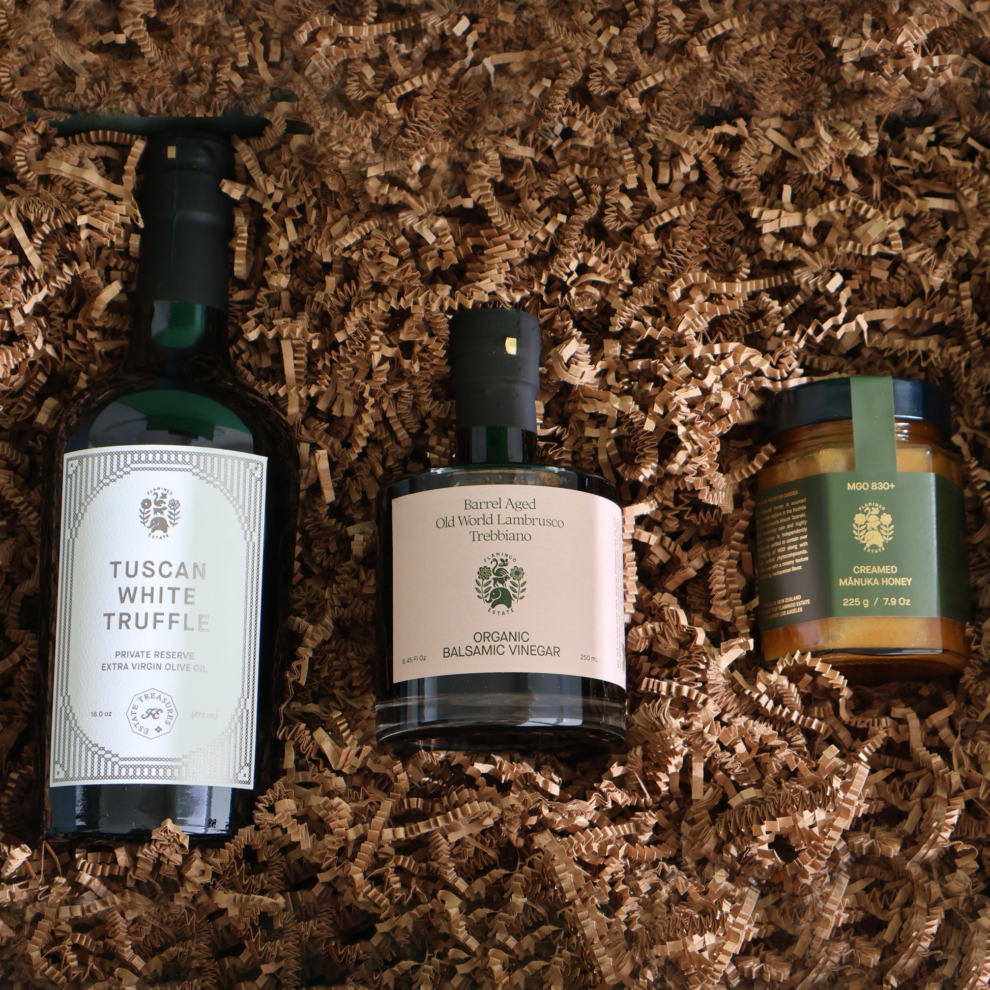 When married with our Estate Extra Virgin Olive Oil, the result is transcendent — a buttery, nutty, and profoundly umami elixir, where the Truffle’s perfume lingers long after the first drizzle. A single spoonful transforms a dish: silk over Risotto, velvet on roasted Potatoes, gold across soft-scrambled Eggs.
