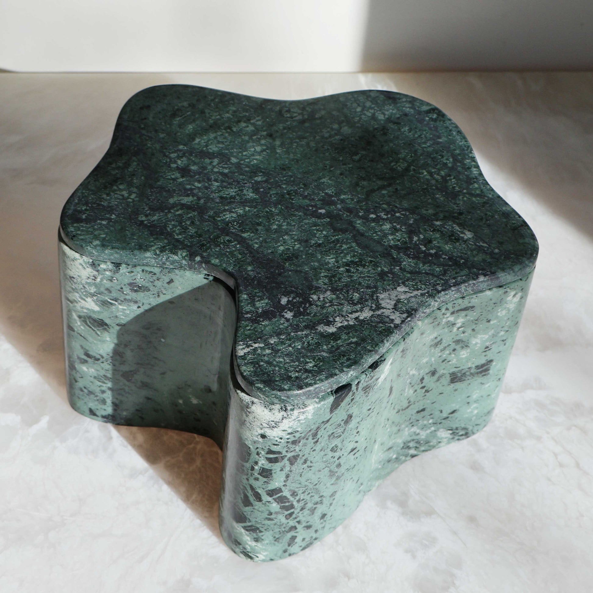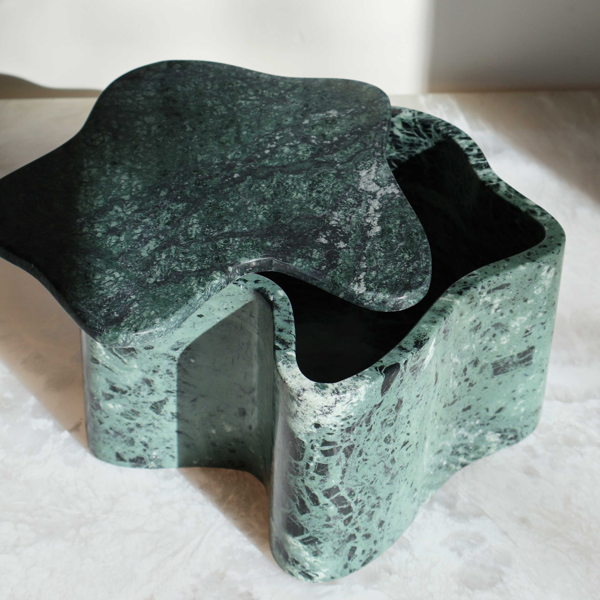 Riffed from our signature Flo Tray, The Flo Box is cut and carved from a single block of marble. It's a one of kind lidded vanity jar with substantial weight and presence that doubles as sculpture. Exclusively designed and produced by Anastasio Home.