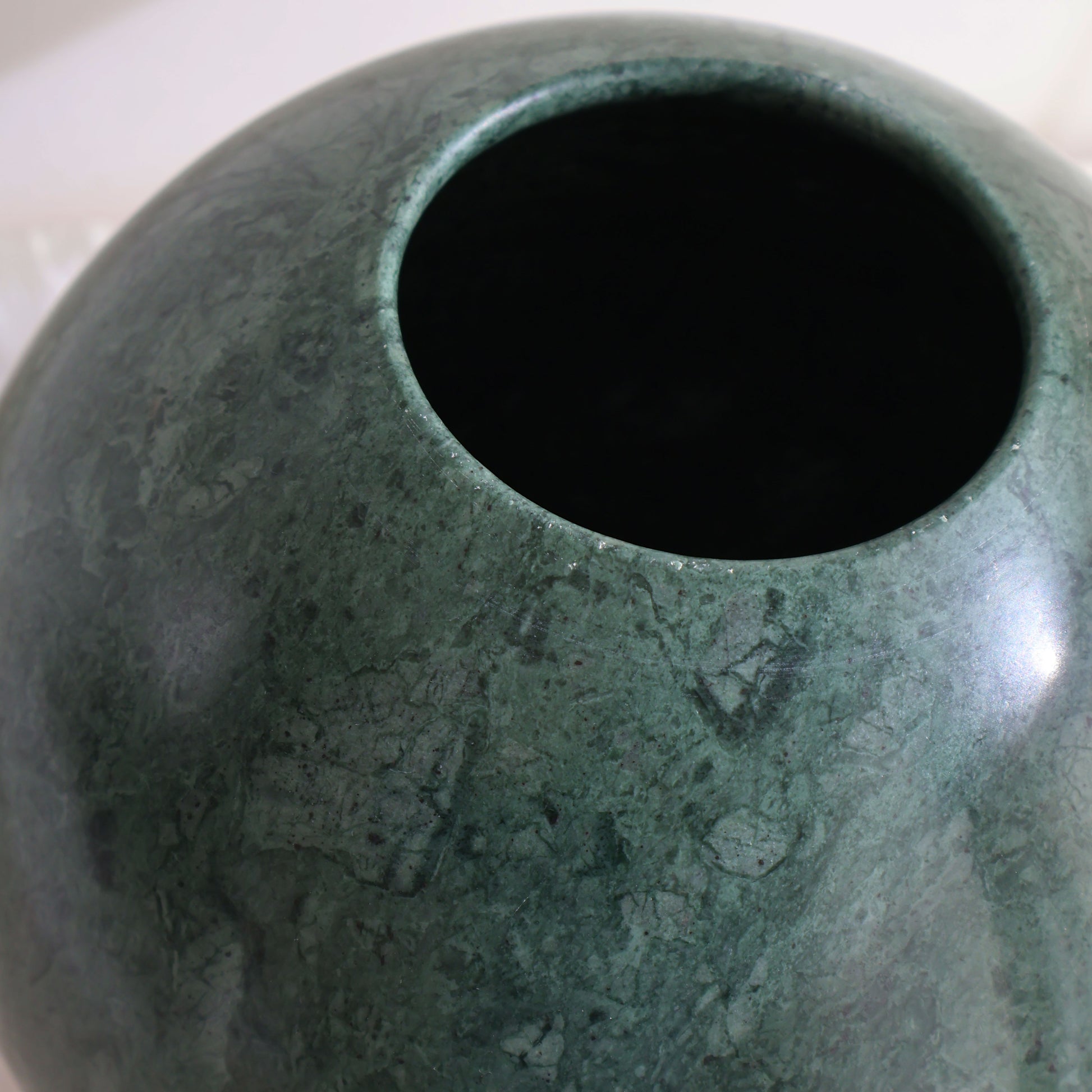 Solid stone spherical vase, hand-lathed from a single cube of stone.