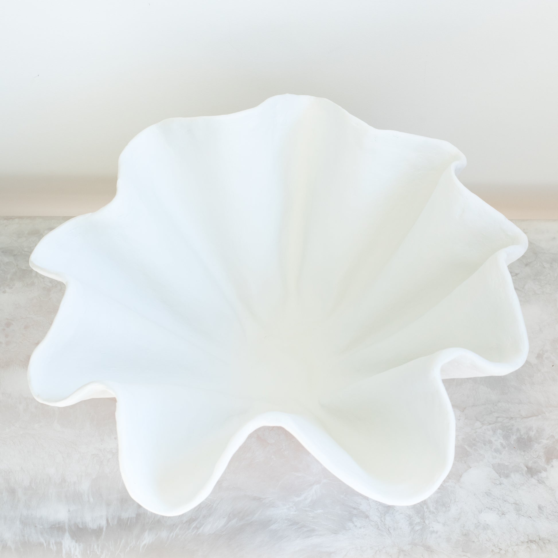 This handmade sculptural decorative piece in raw white plaster is a uniquely textured piece for your space. It is the perfect centerpiece.