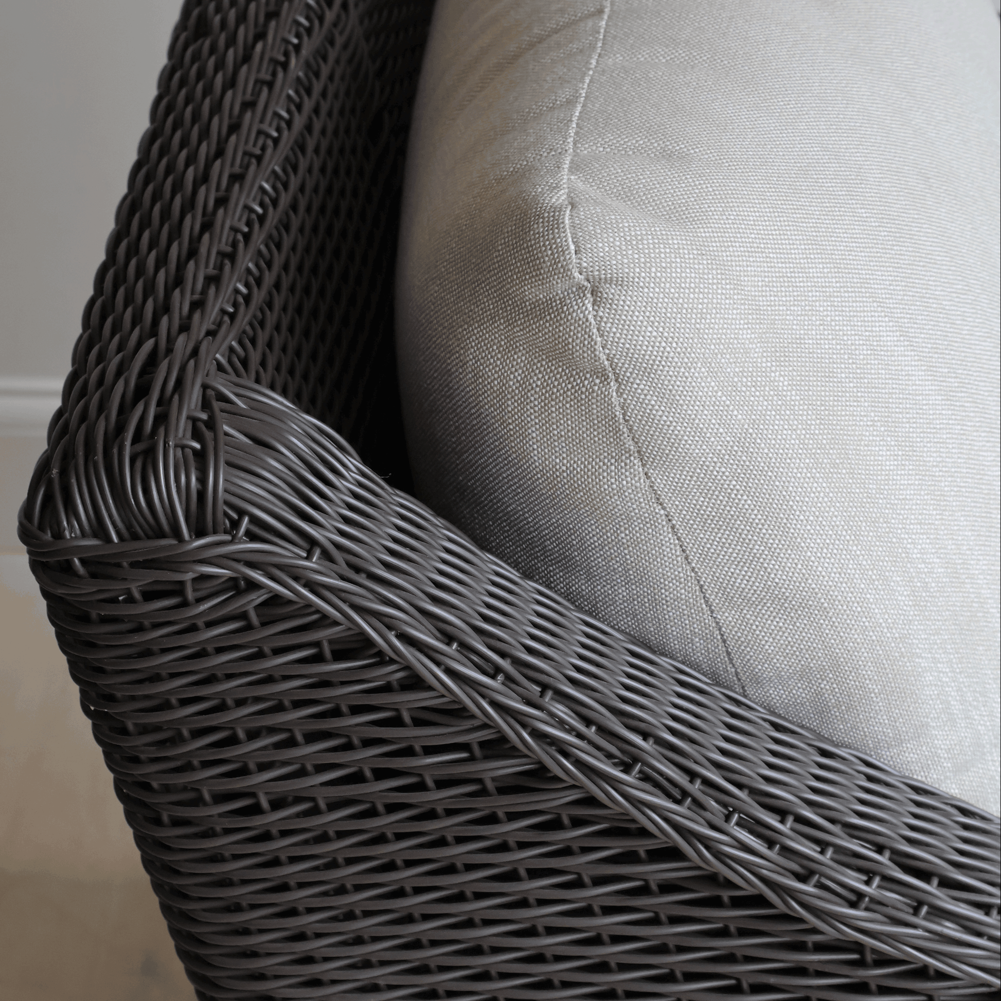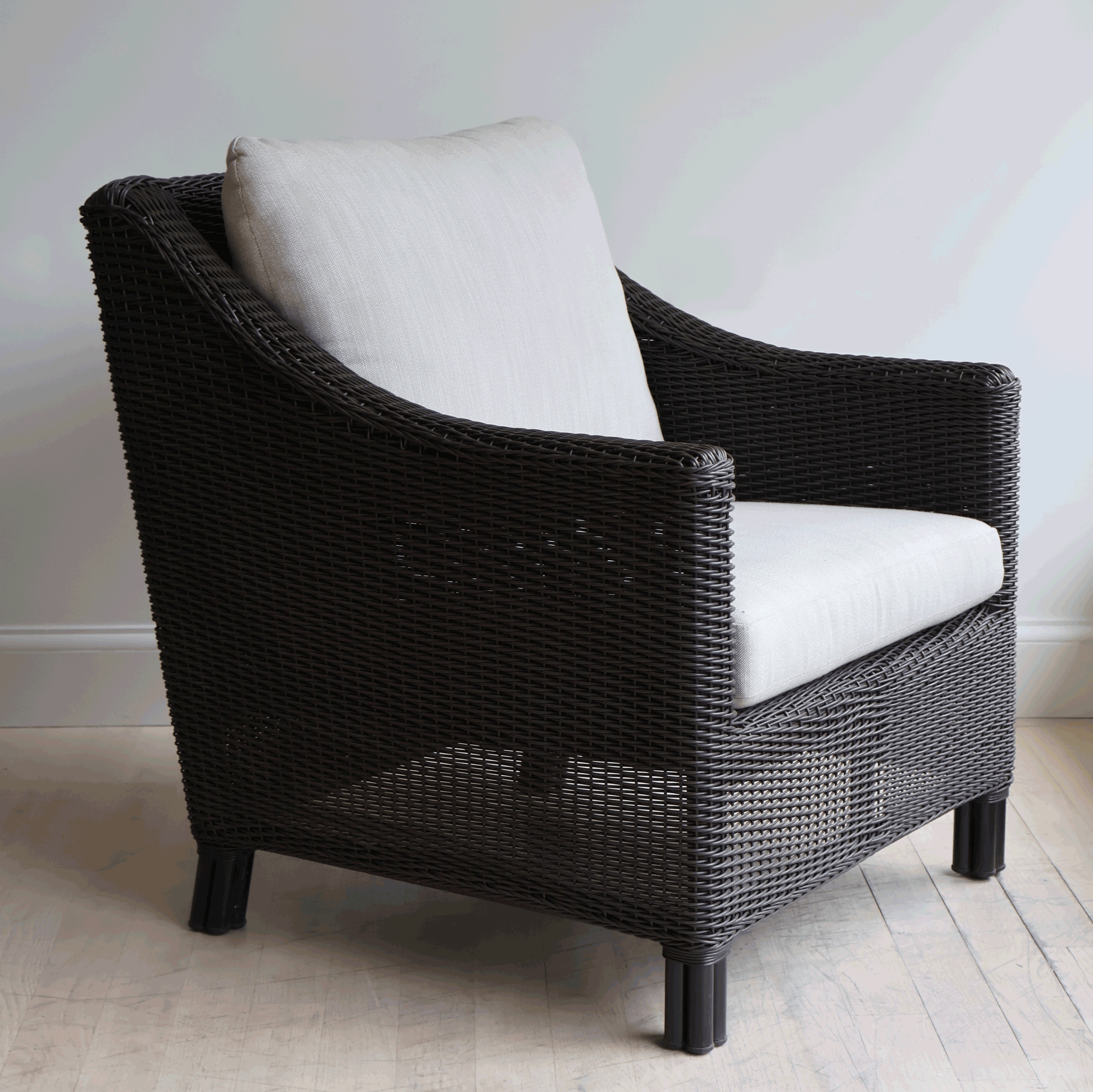 Aluminum frame with resin wicker. Suitable for outdoor use. Additional finishes are available - please inquire for finish options and lead times.