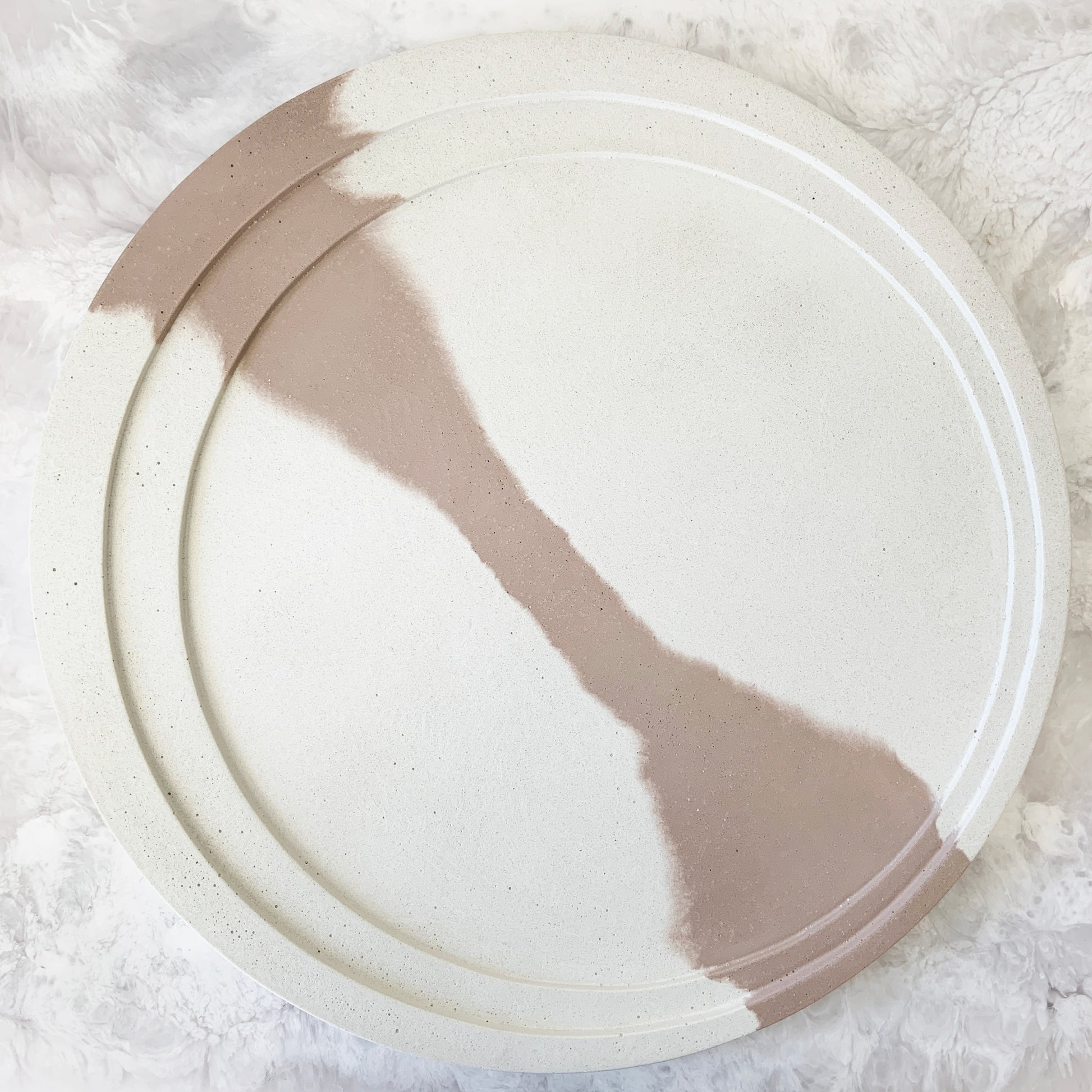 A generously sized concrete tray of off-set circles. The colors blend together subtly with a painterly effect. Each casting is unique, and color patterns will vary.