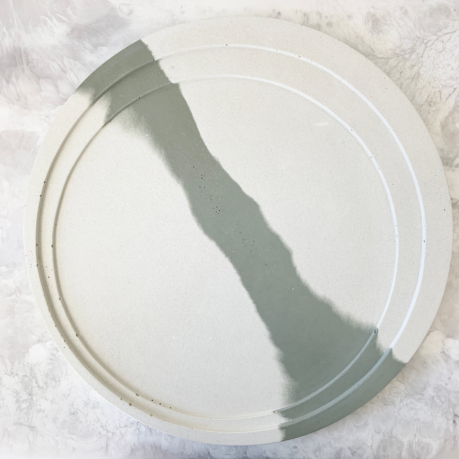 A generously sized concrete tray of off-set circles. The colors blend together subtly with a painterly effect. Each casting is unique, and color patterns will vary.