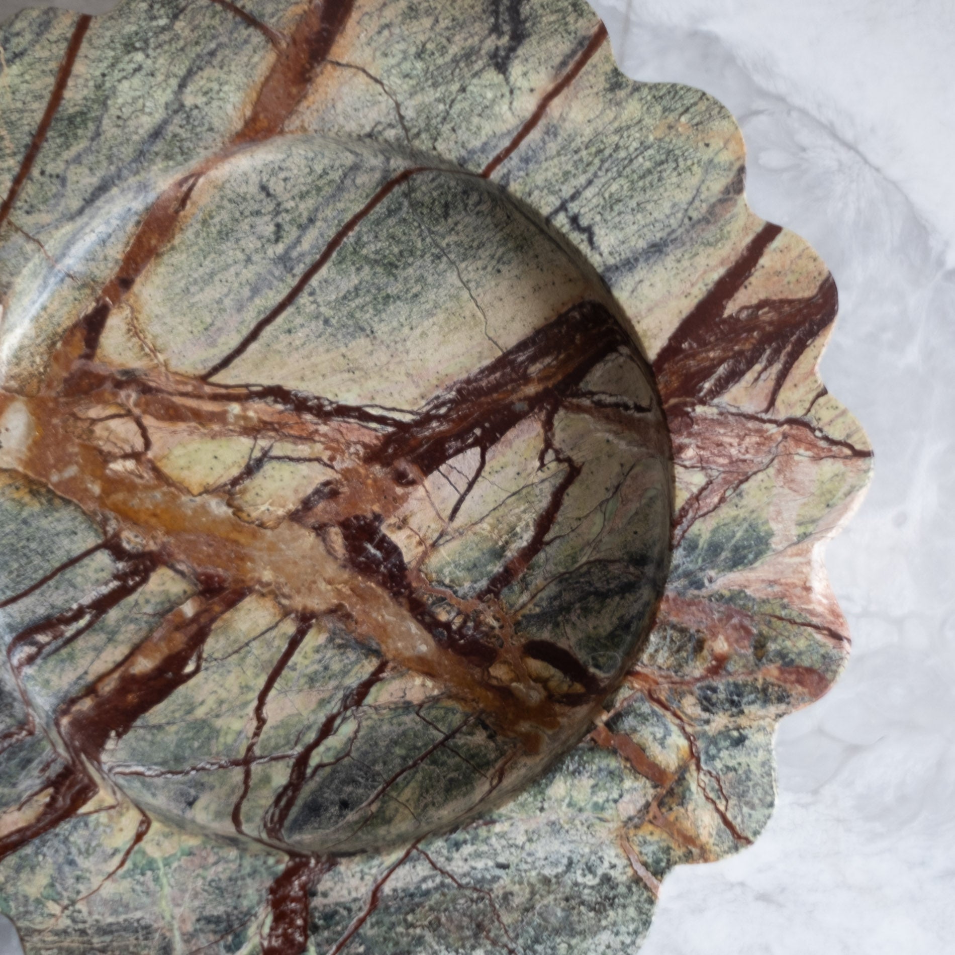 Subtle scallop variations and patterns should be expected and embraced as this is a hand-finished object made of natural stone.