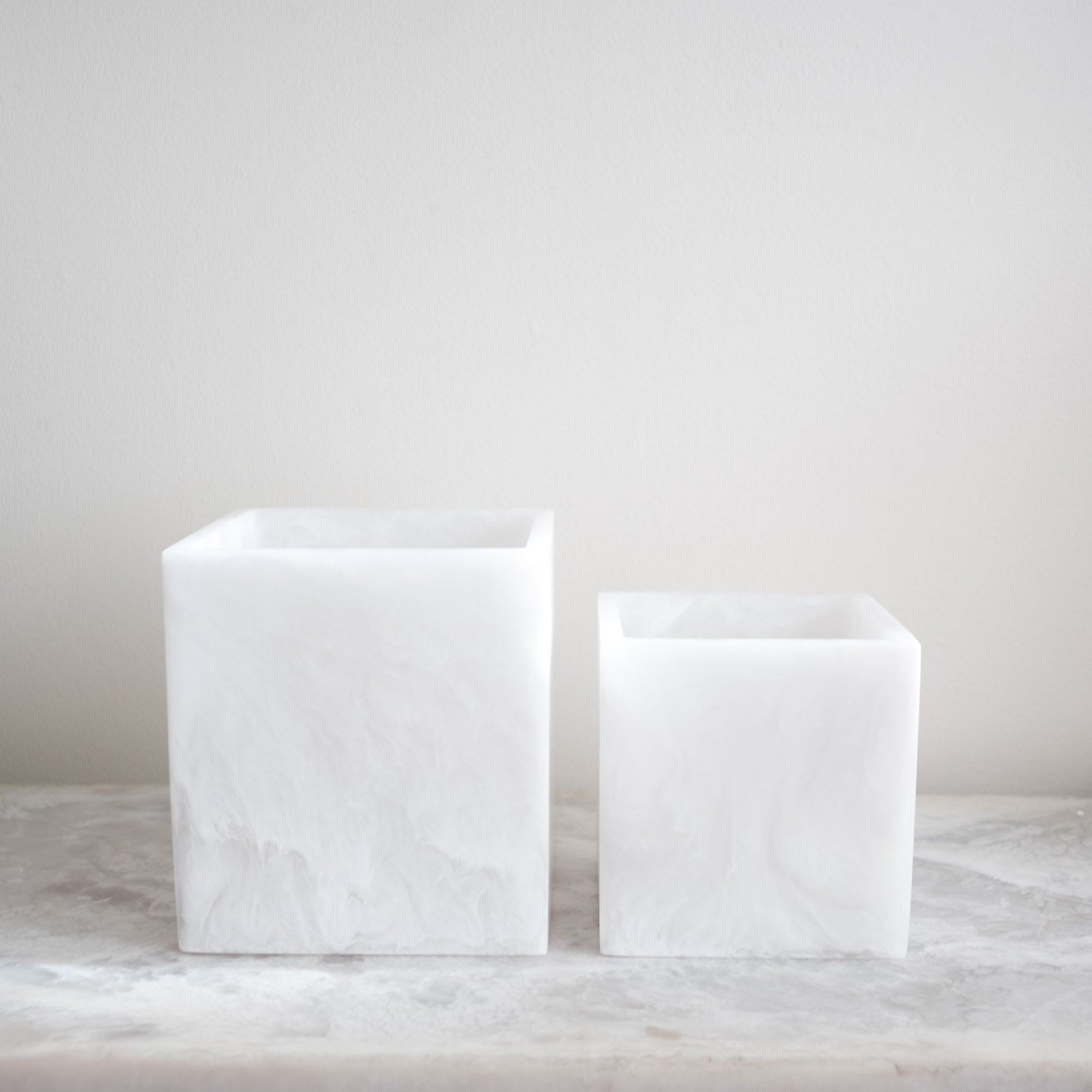 These beautiful square contemporary vases, from the Whistler Vase Collection, are the perfect vessel for any floral arrangement or potted plant. All resin containers are non-porous, stain-resistant, and watertight.